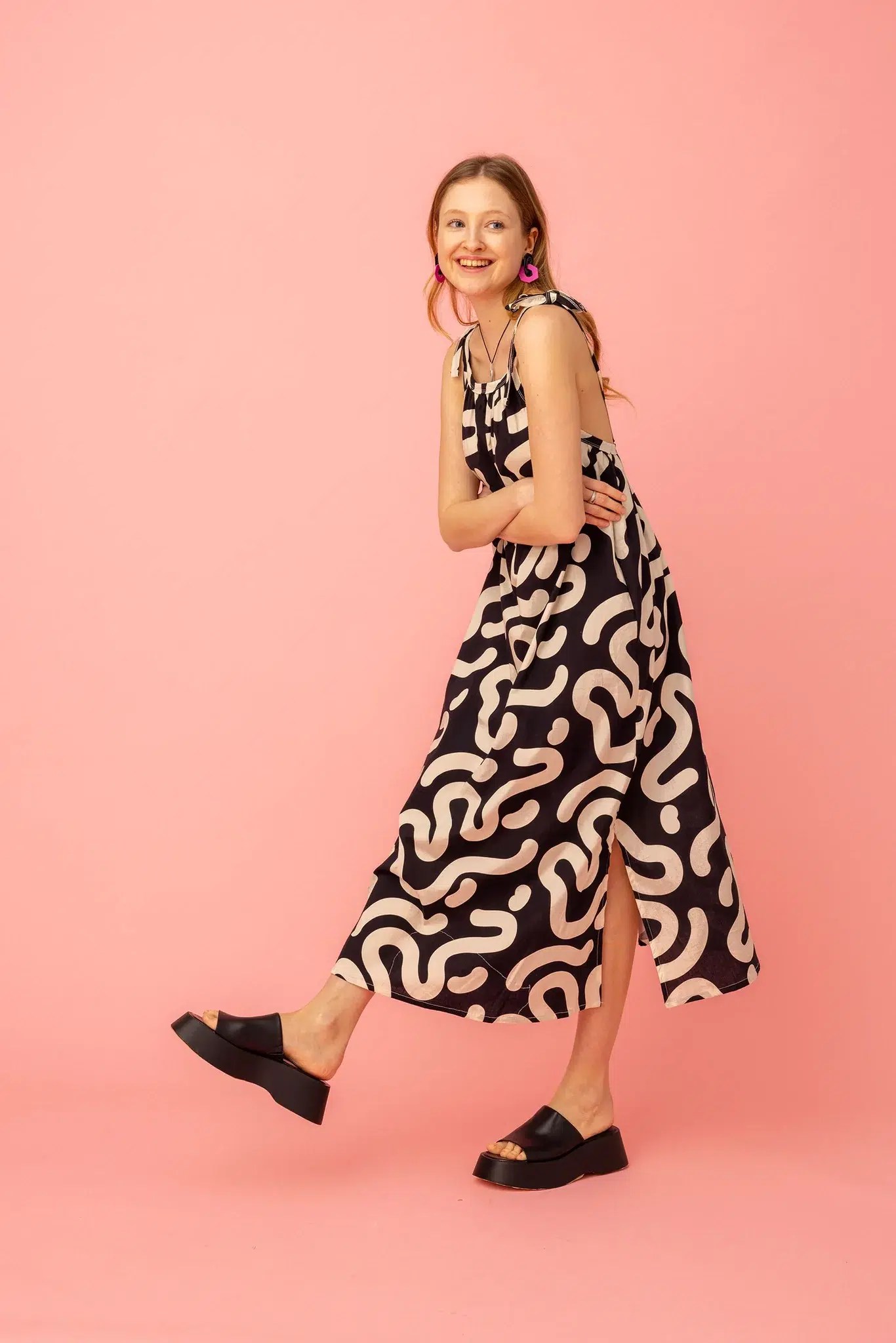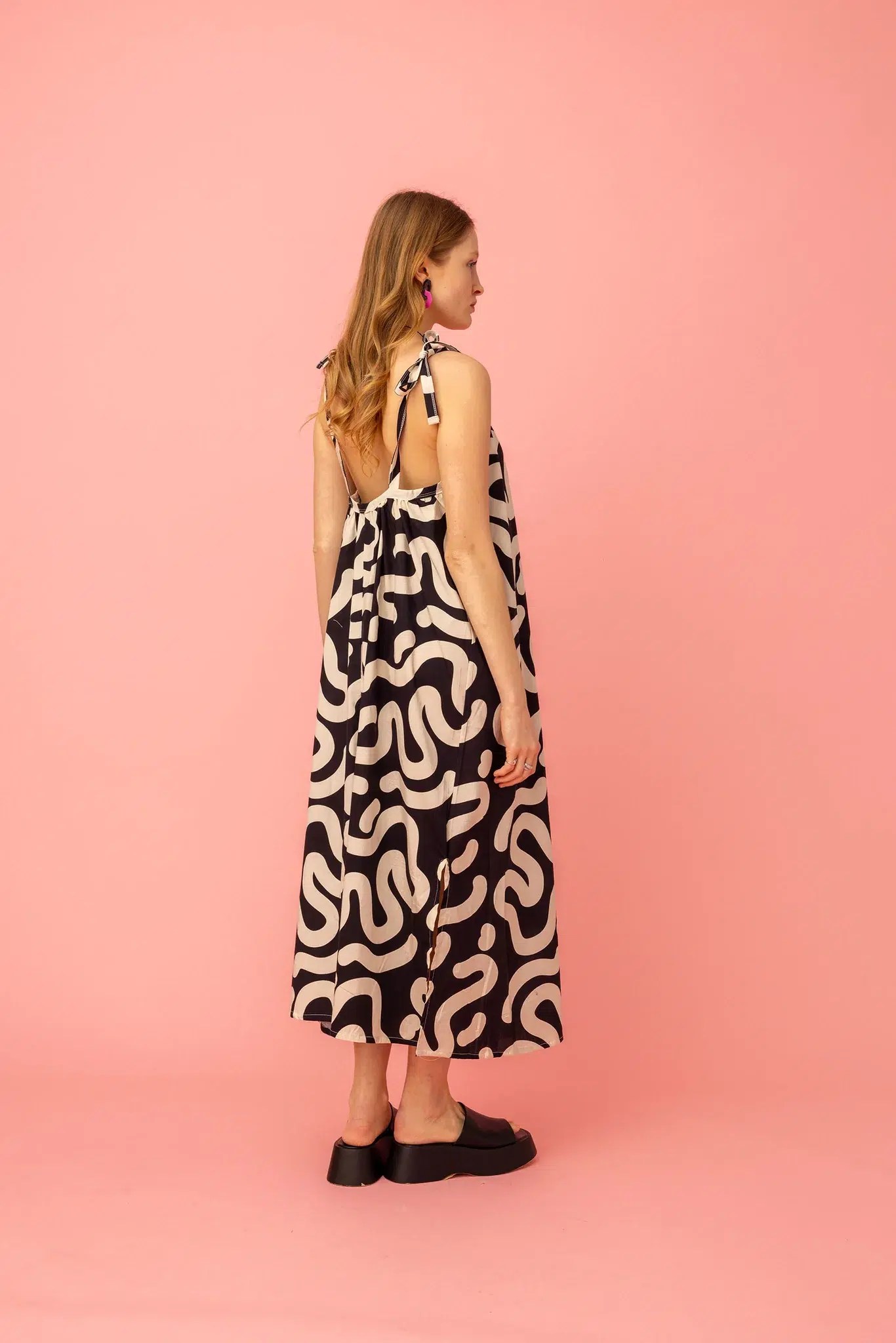 Βαμβακερό φόρεμα με τιράντες που δένουν στο πλάι.