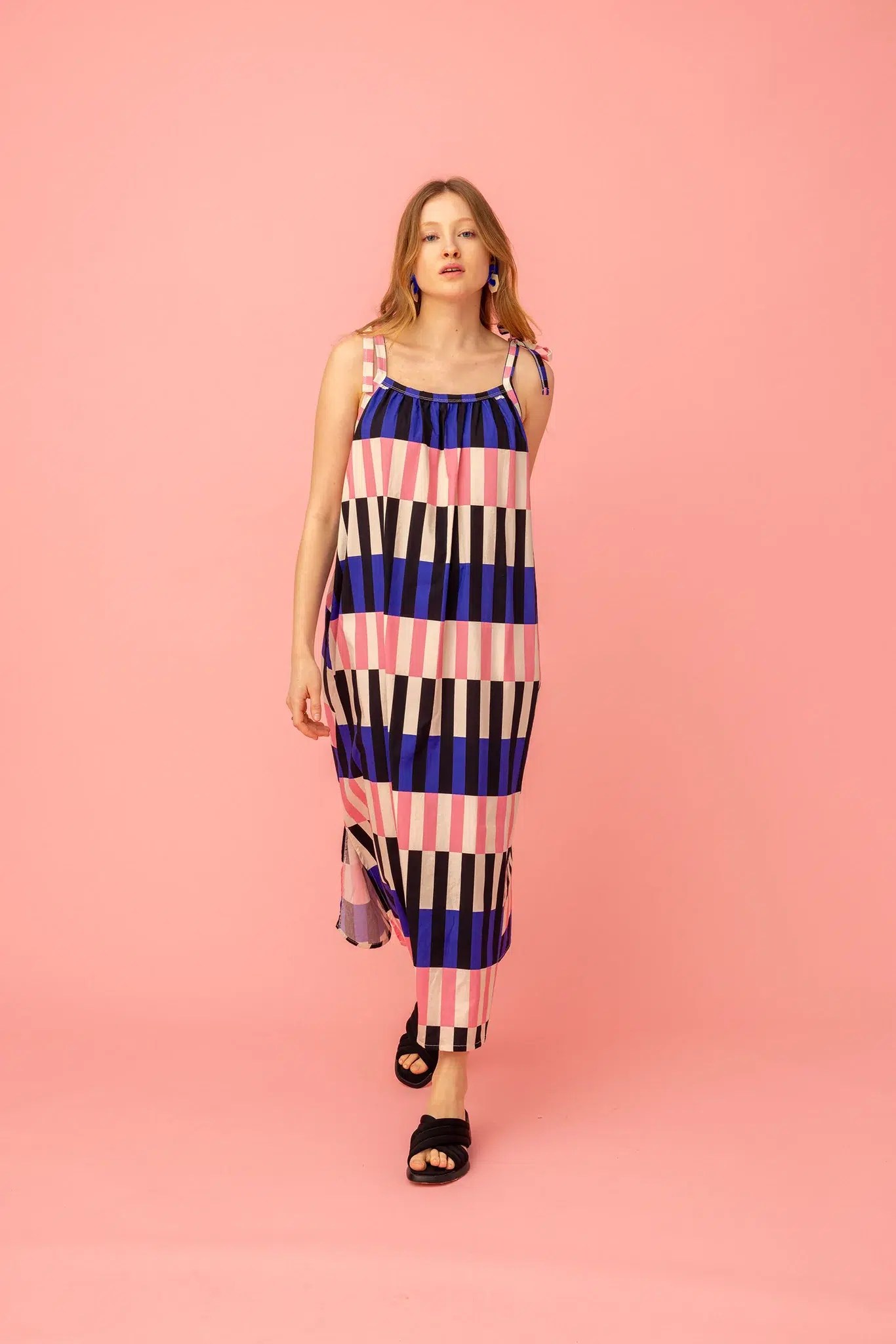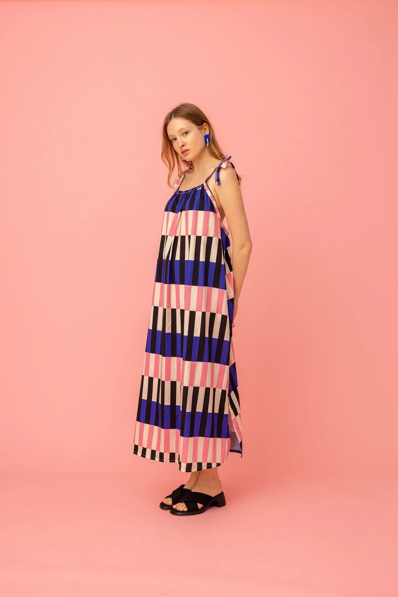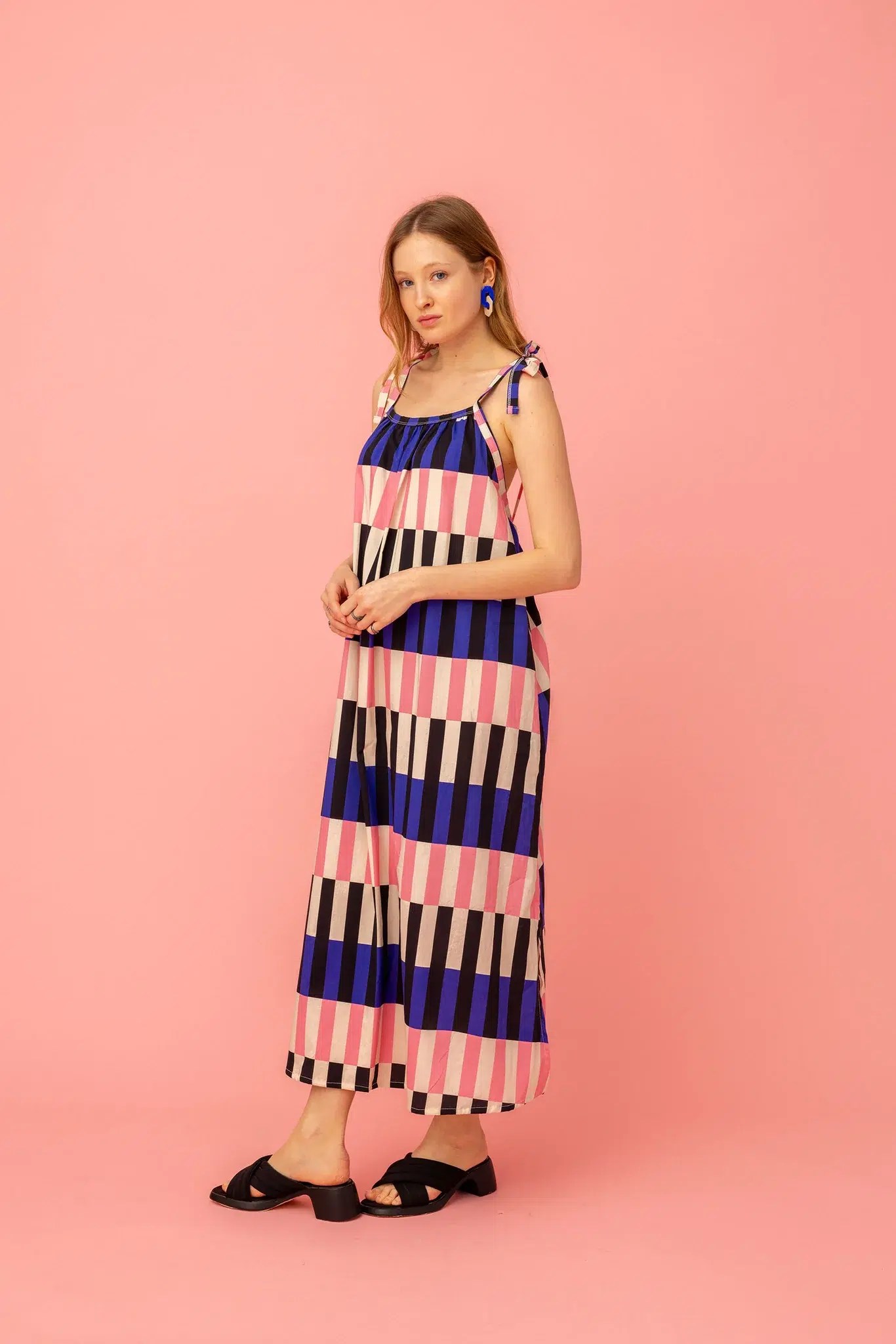 Βαμβακερό φόρεμα με τιράντες που δένουν στο πλάι.