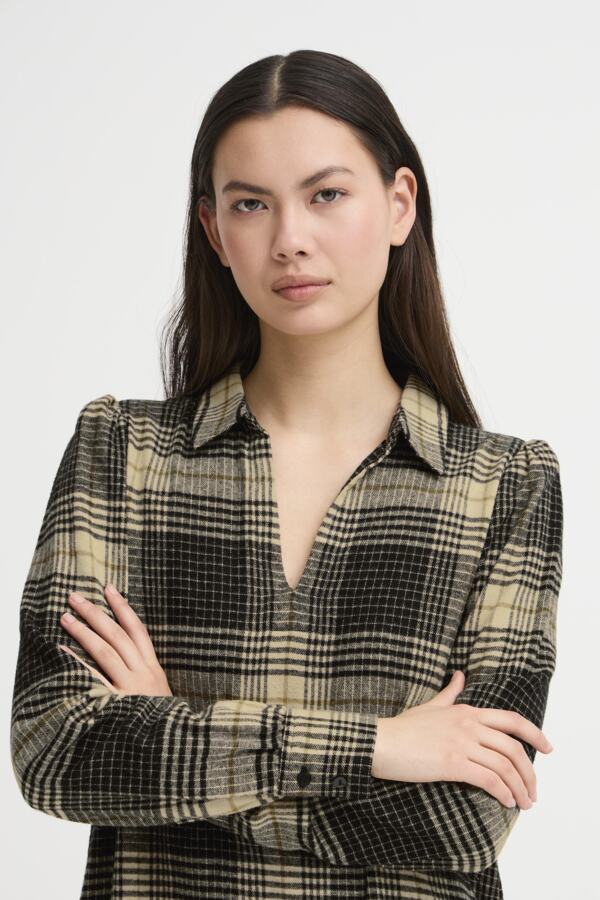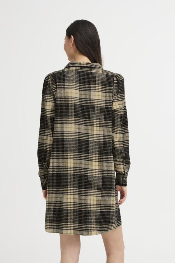 Μακρυμάνικο καρό βαμβακερό φόρεμα με γιακά.