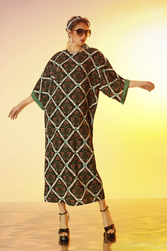 Midi φόρεμα/καφτάνι με ζώνη.
