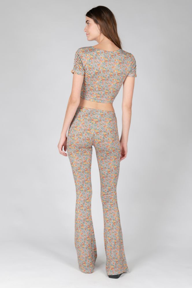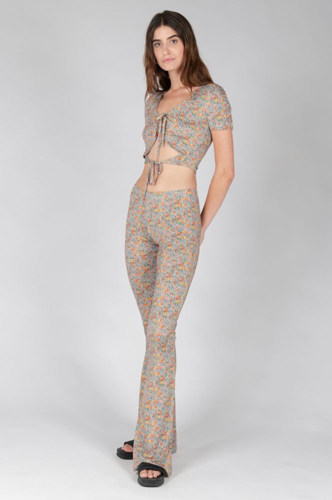 Ελαστικό παντελόνι καμπάνα με φλοραλ print.