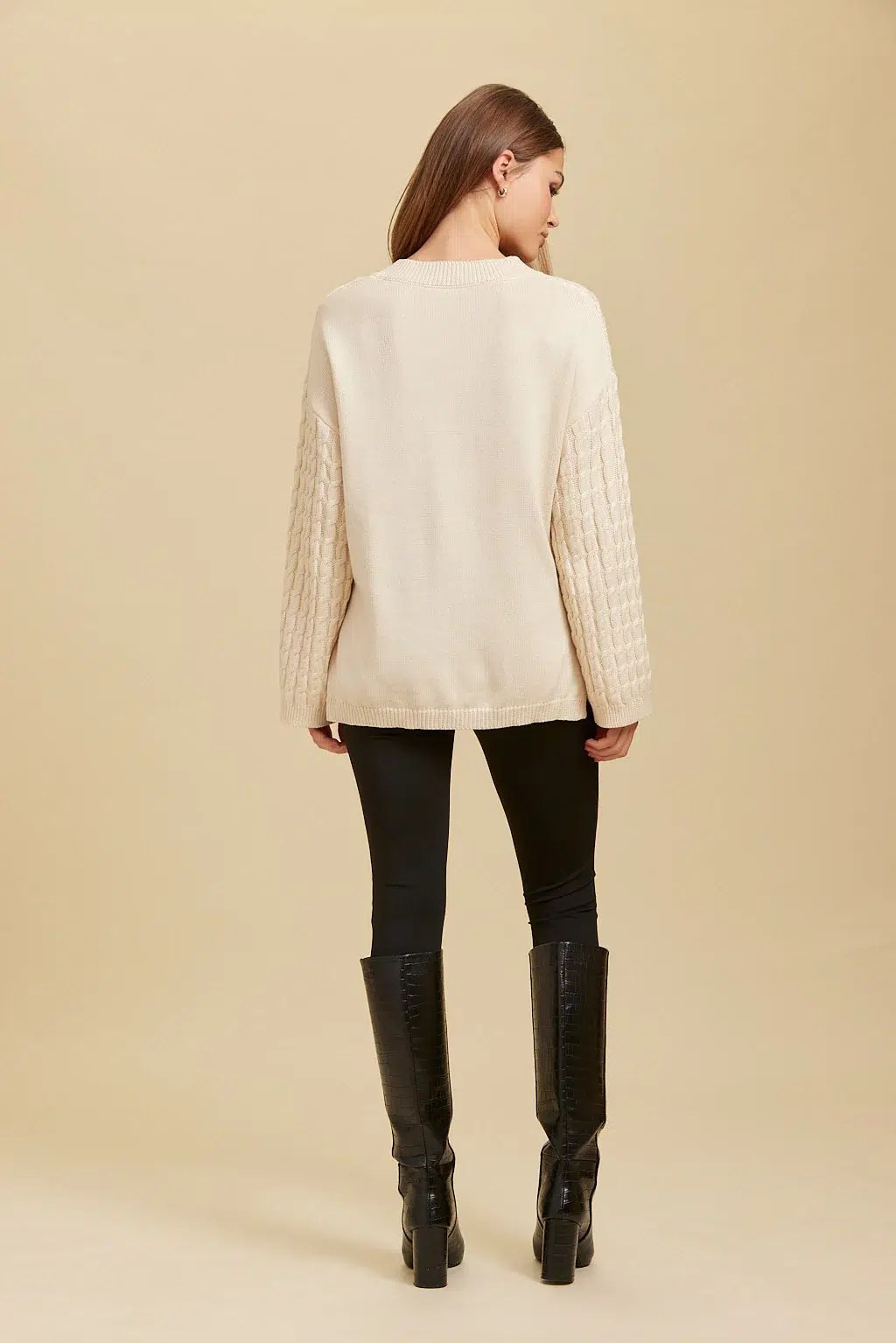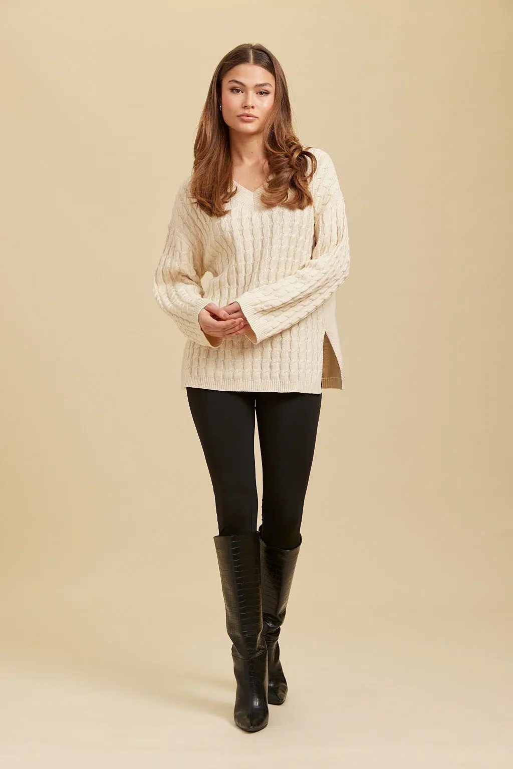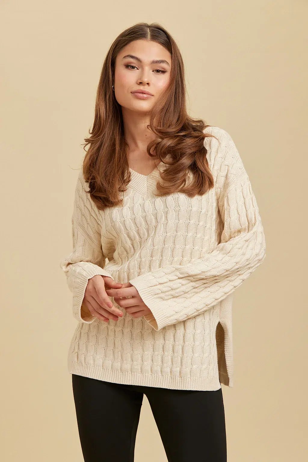 Πουλόβερ με λεπτή πλέξη πλεξούδα, κανονική γραμμή και λαιμόκοψη V.
