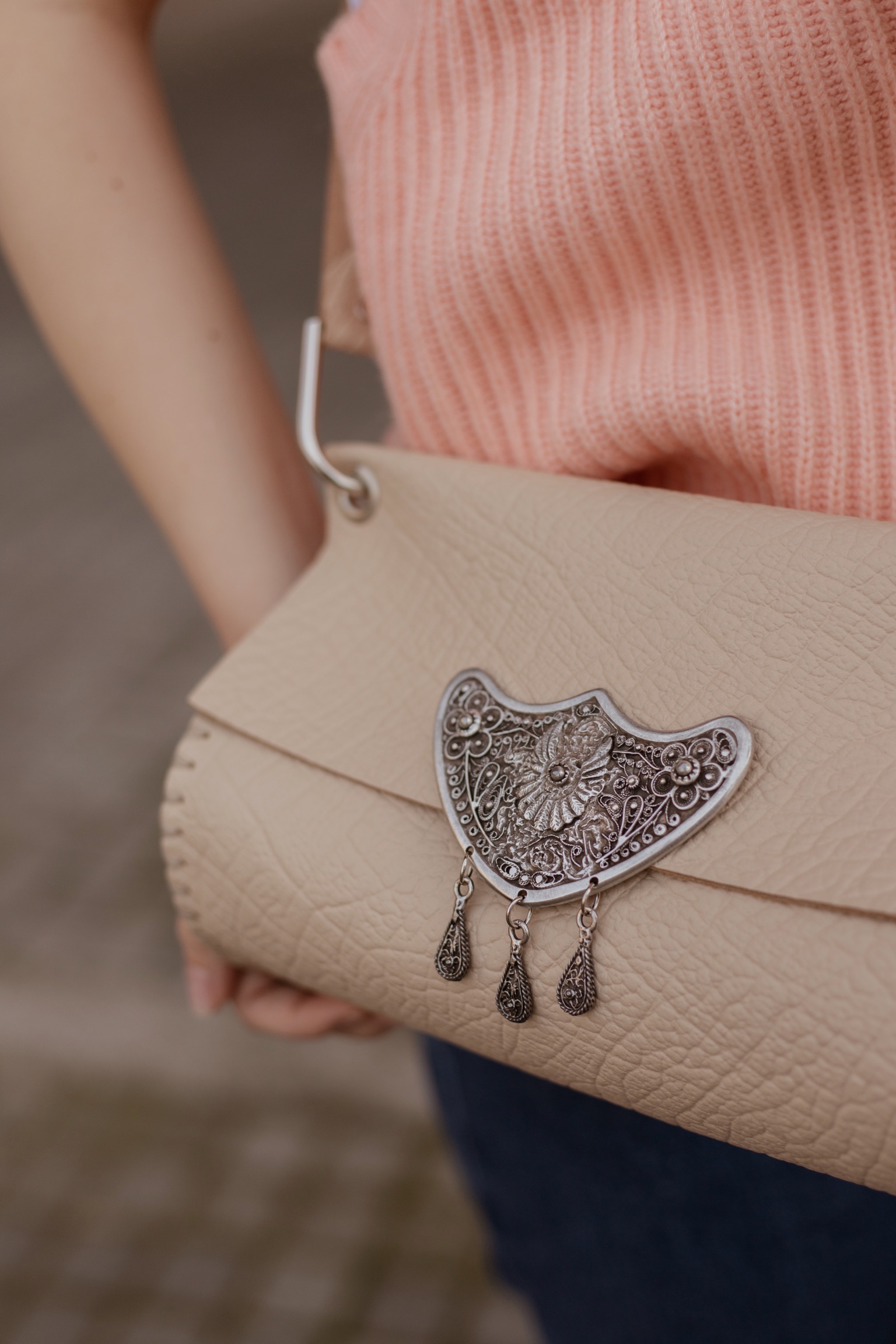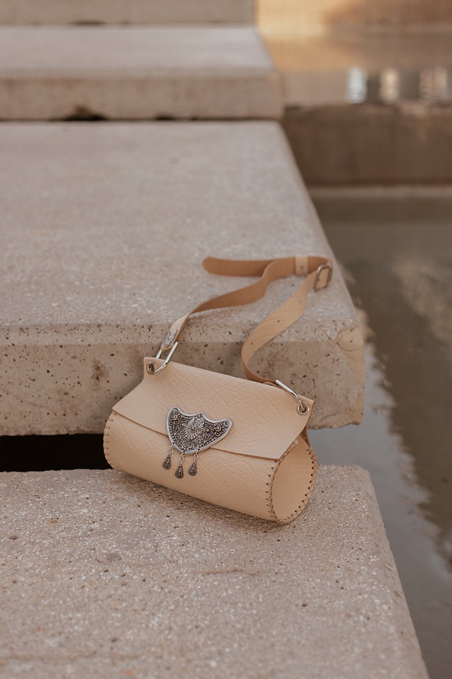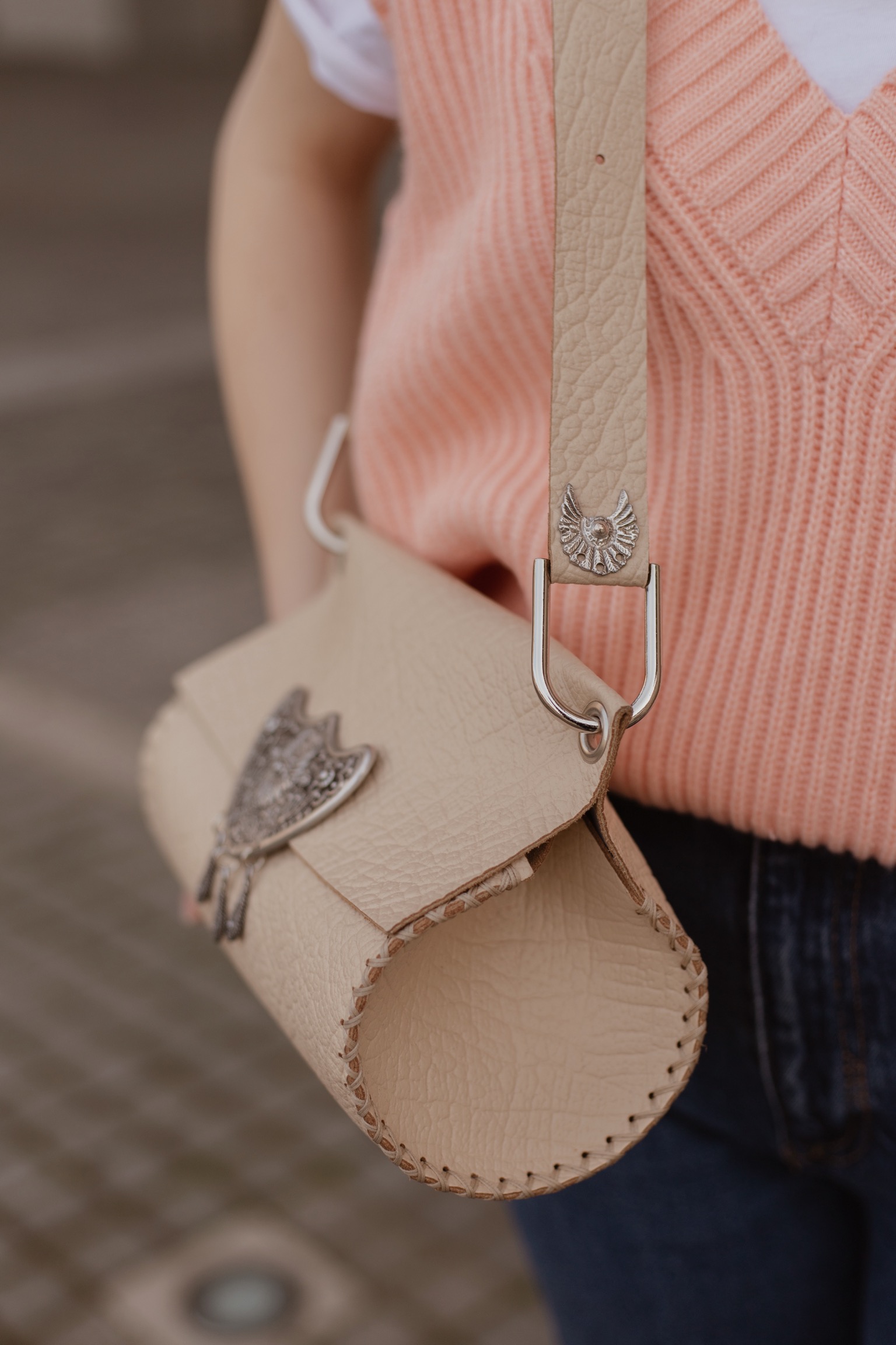 Χειροποίητη δερμάτινη τσάντα ώμου με νίκελ μεταλλικές λεπτομέρειες, μαγνητικό κούμπωμα και δερμάτινο λουρί με δυνατότητα αυξομείωσης. Περιλαμβάνει αποσπώμενο δερμάτινο πορτοφολάκι.