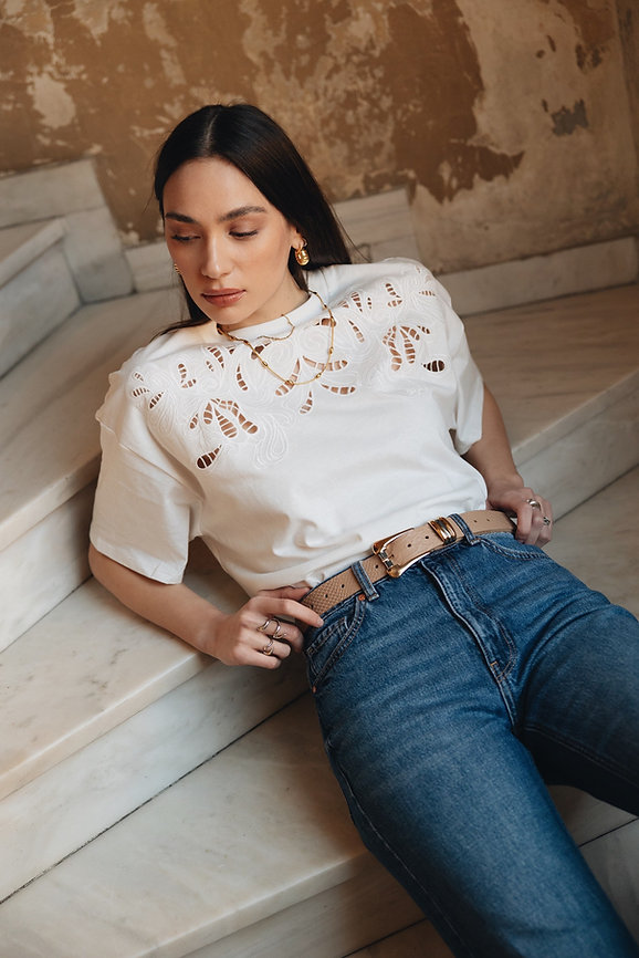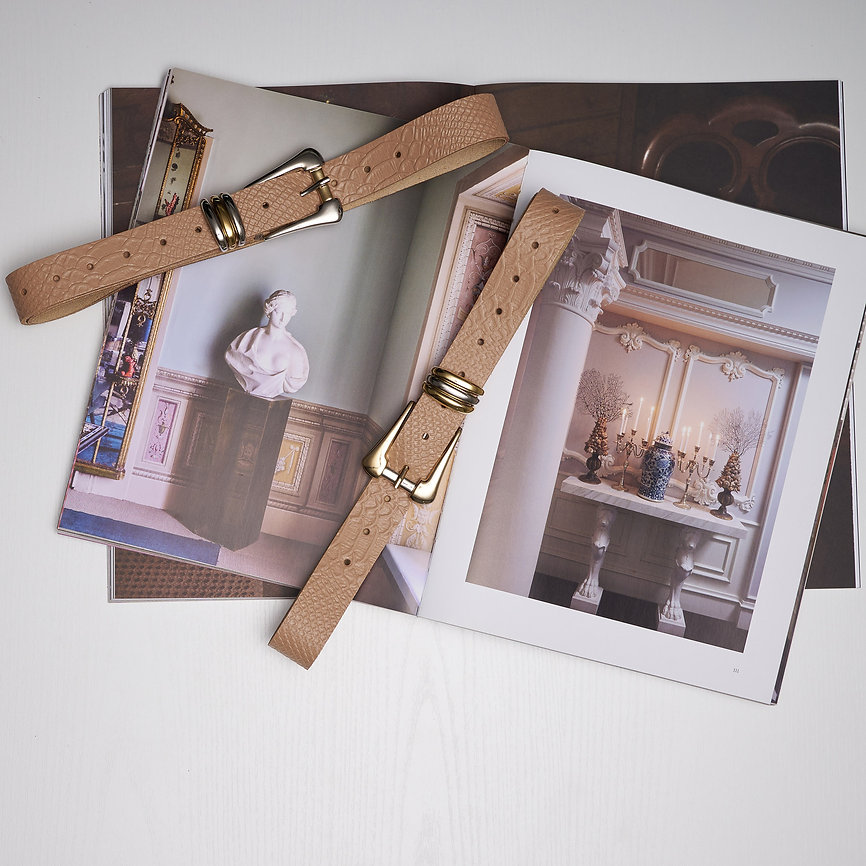 Χειροποίητη δερμάτινη ζώνη με χρυσά και νίκελ μεταλλικά στοιχεία.