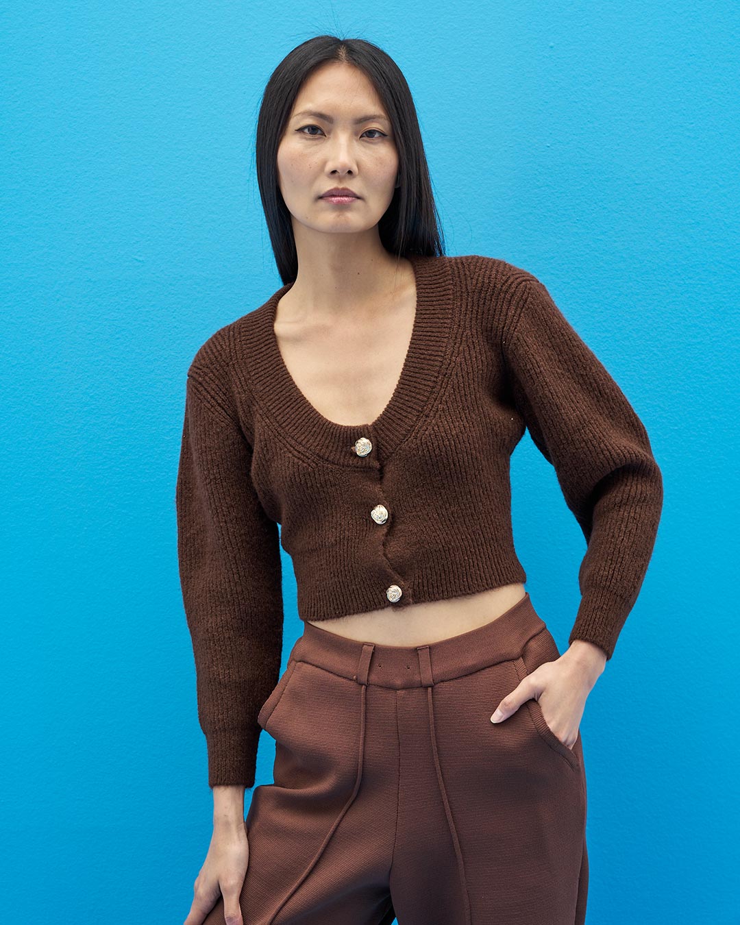 Κοντό πλεκτό ζακετάκι με κουμπιά.