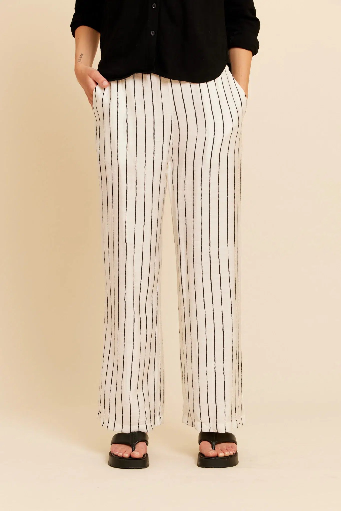 Ριγέ παντελόνι σε ίσια γραμμή.