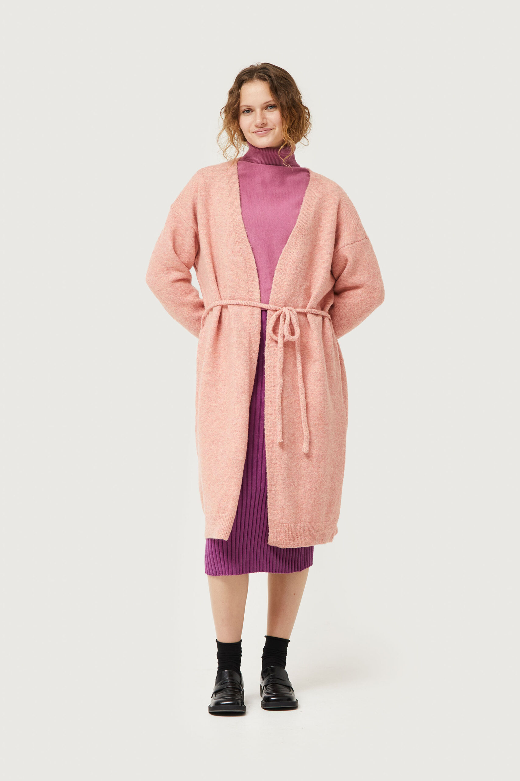 Μακριά πλεκτή ζακέτα με λεπτή ζώνη.