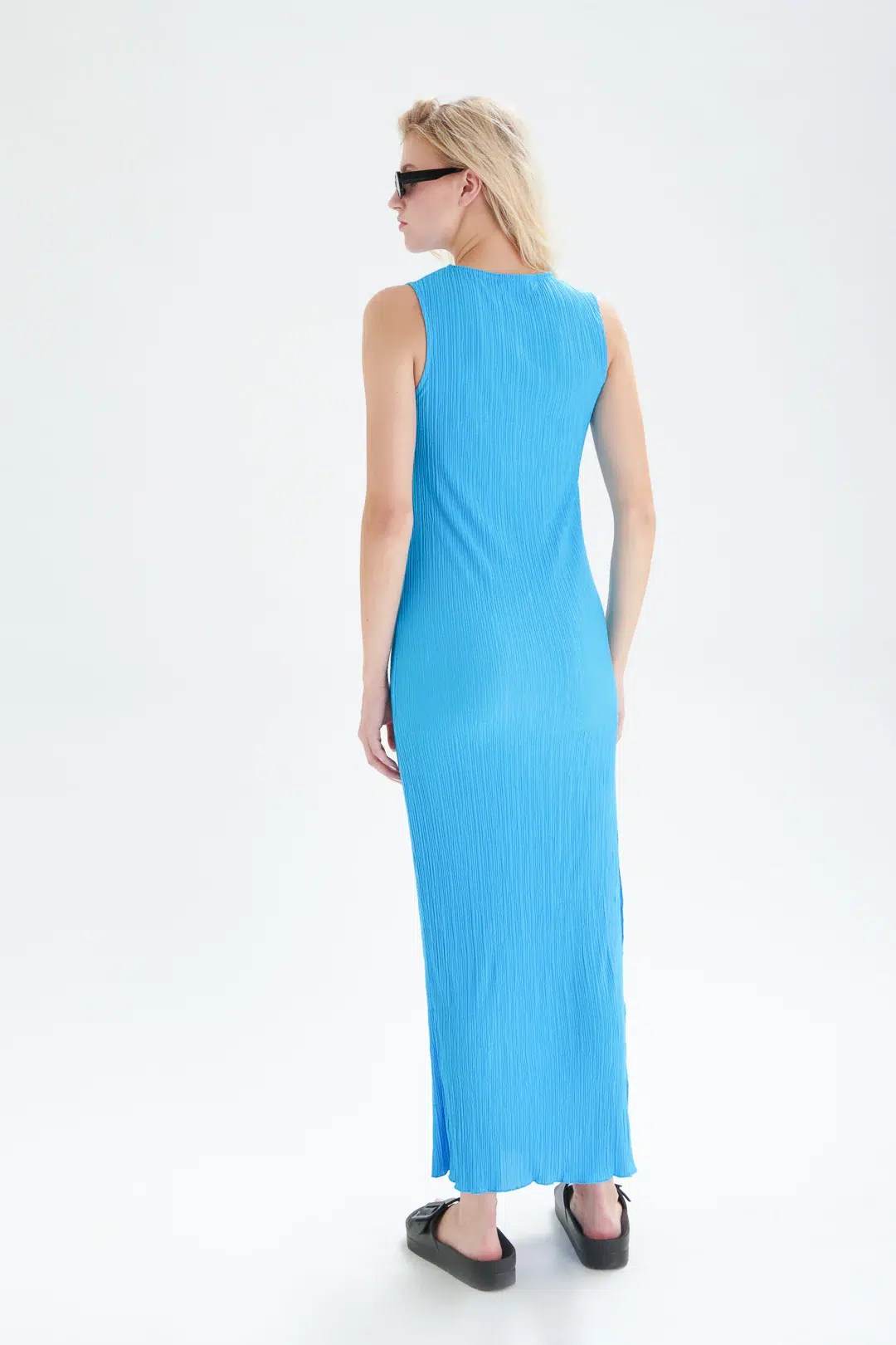 Maxi αμάνικο ελαστικό φόρεμα με σκίσιμο στο πλάι.