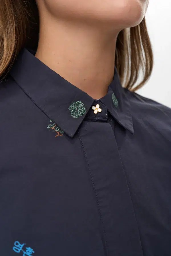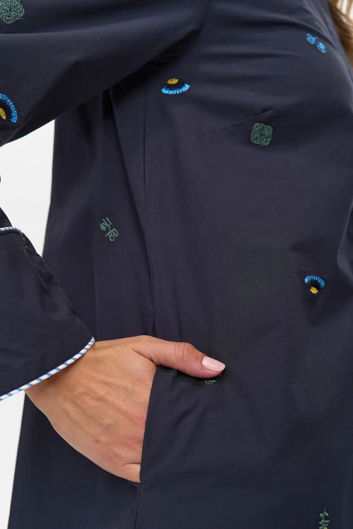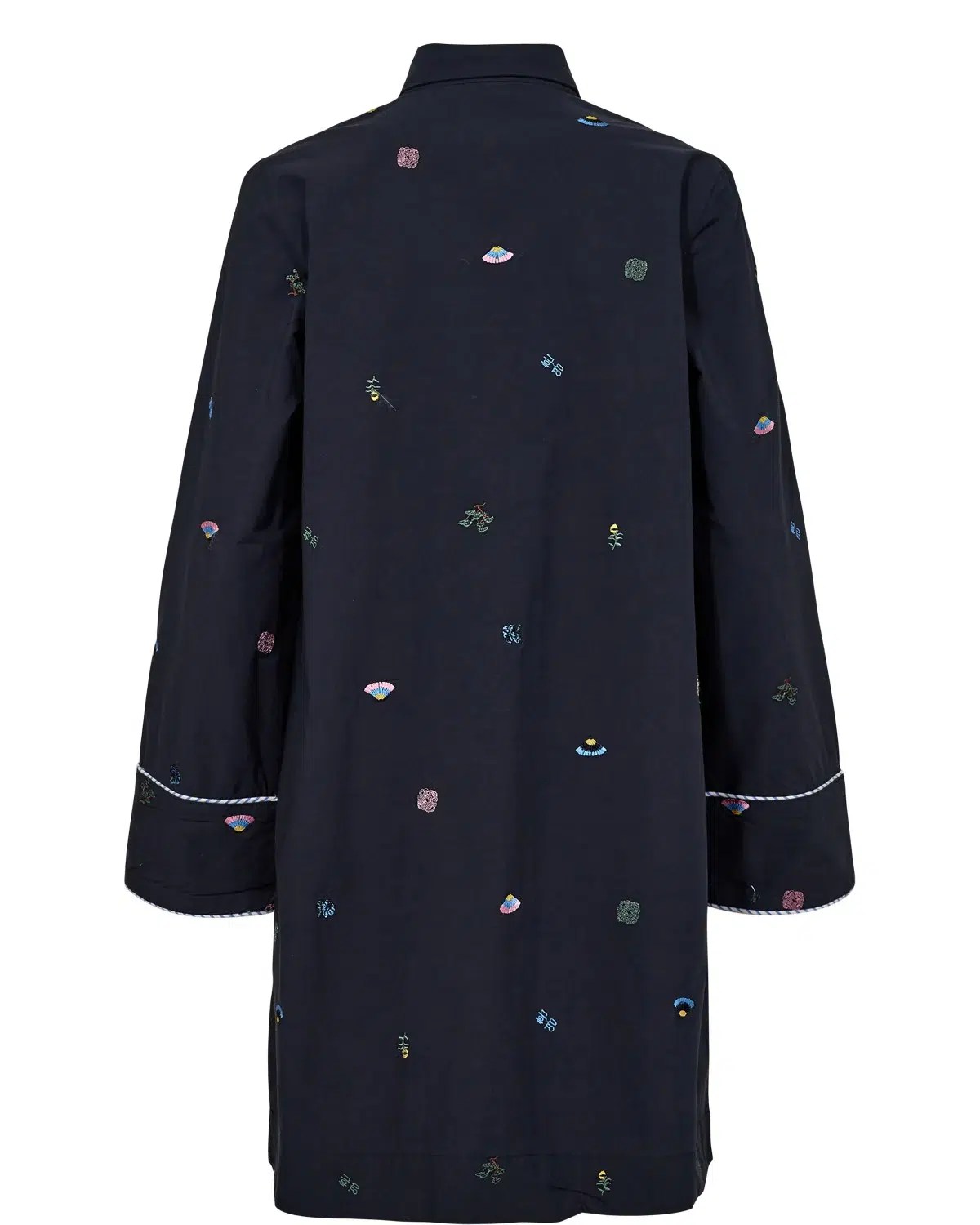 Βαμβακερό φόρεμα με γραμμή Α και κεντήματα.