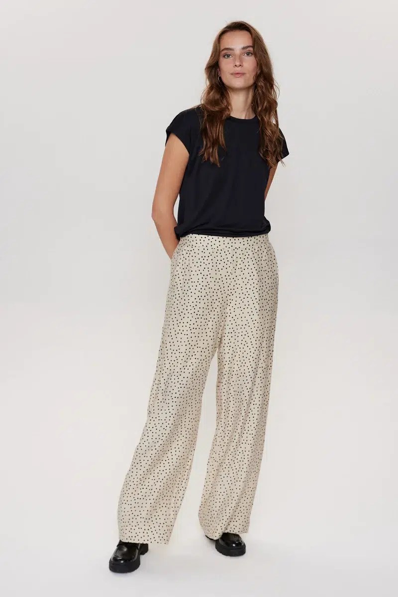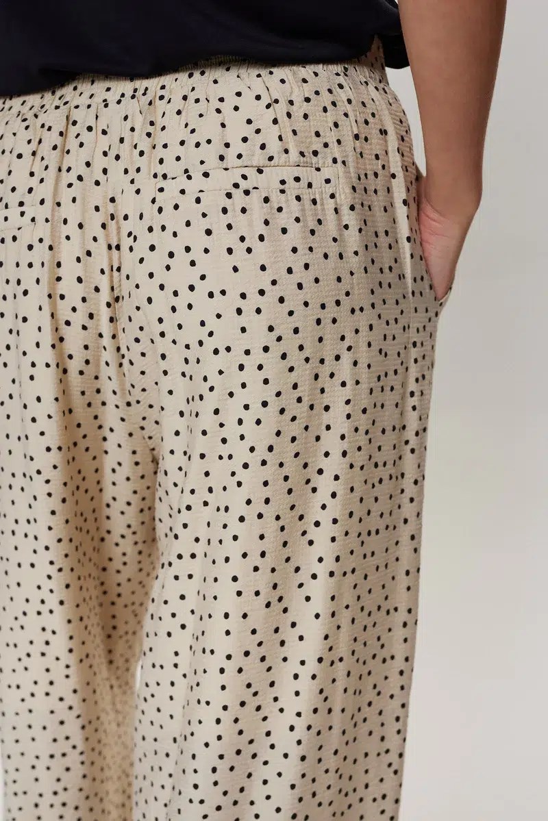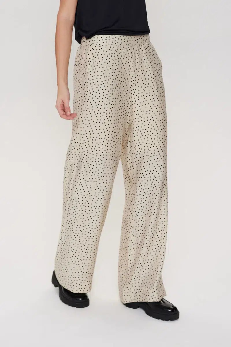 Παντελόνι με άνετη ίσια γραμμή, ελαστική μέση και διακριτικό πουά print.