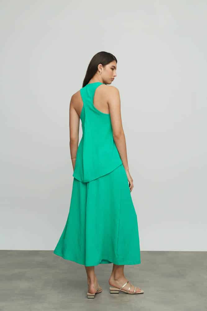 Πράσινο αμάνικο top, χιαστί στην πλάτη, με στρογγυλή λαιμόκοψη.
