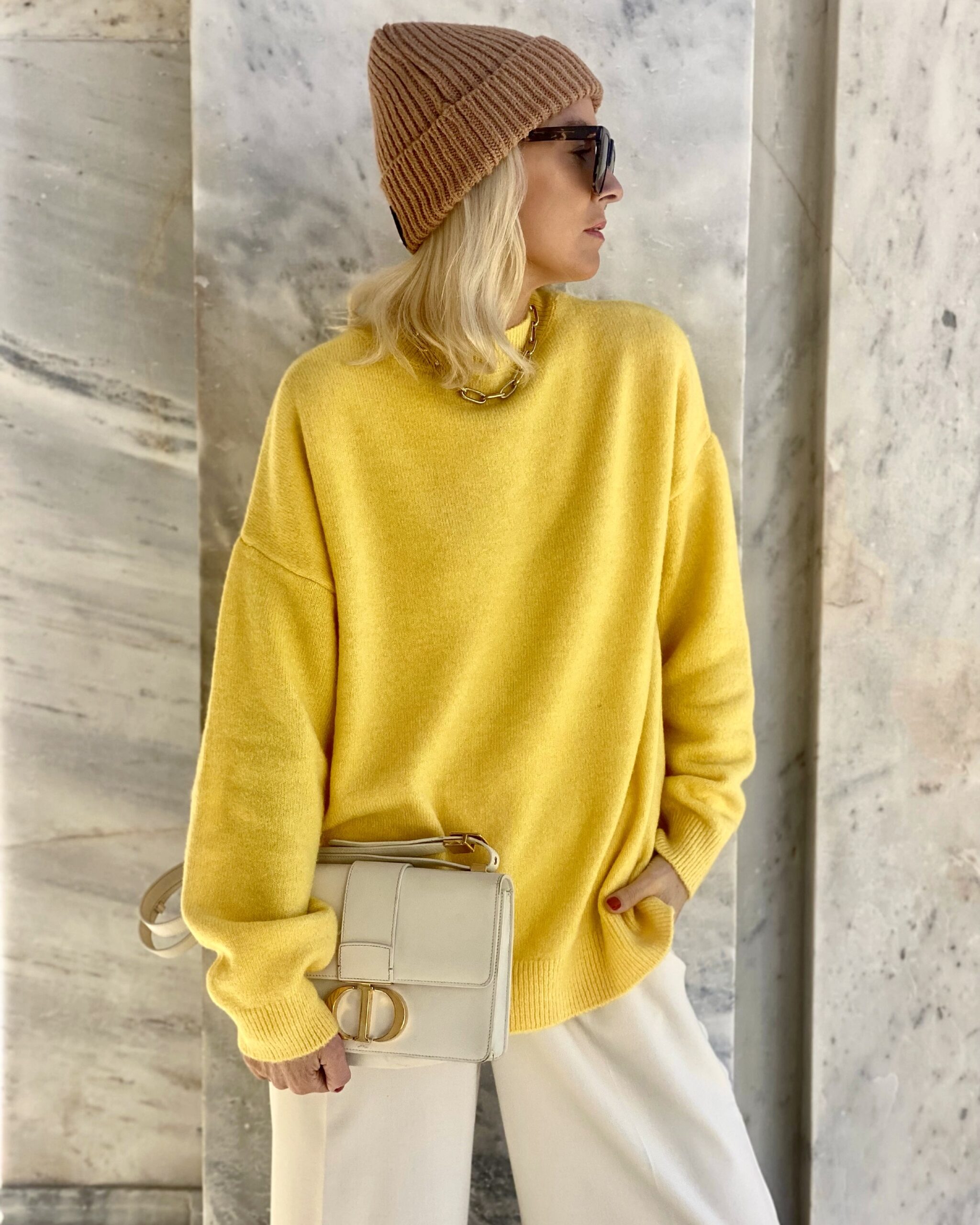 Oversized Round Neck Knit Sweater Yellow