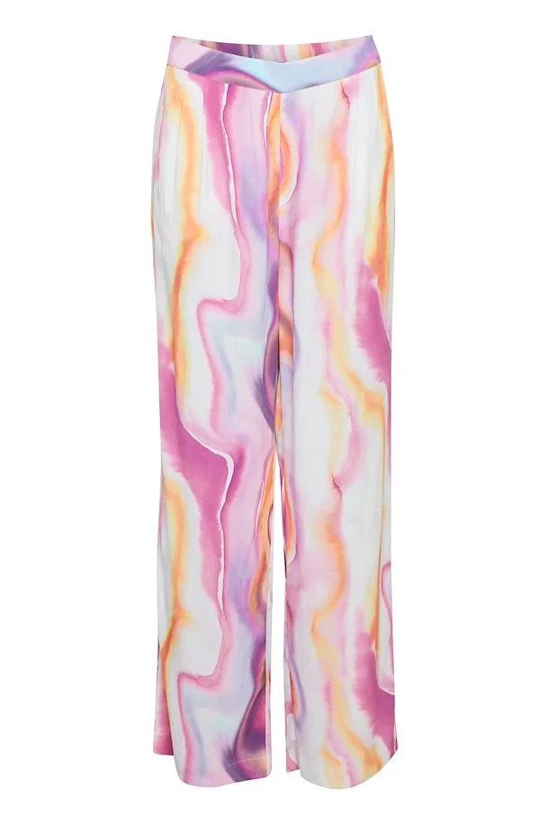 Printed ίσιο παντελόνι με τσέπες και λάστιχο πίσω στη μέση.