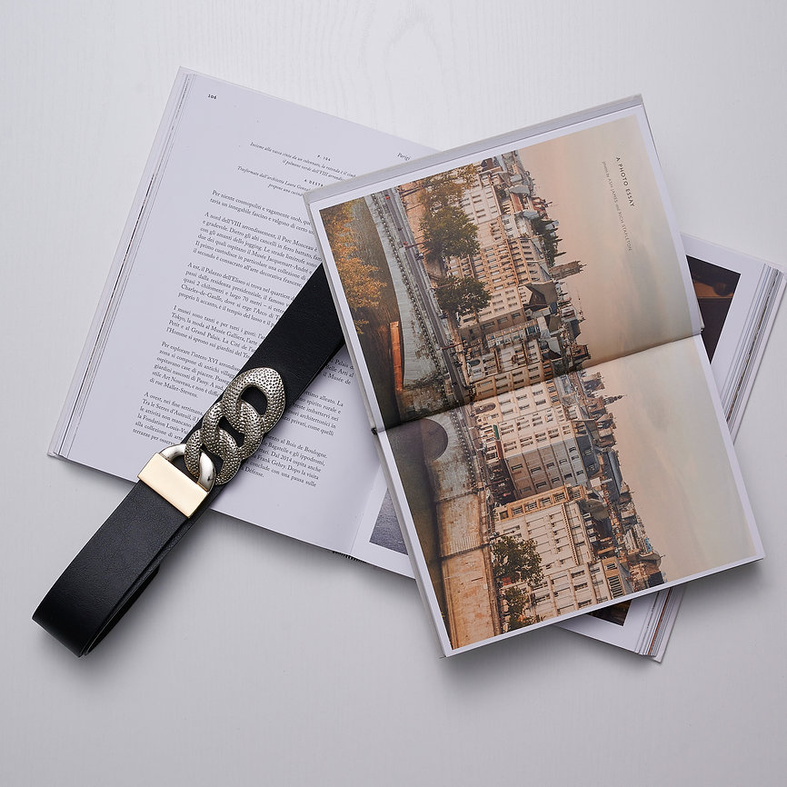 Χειροποίητη δερμάτινη ζώνη με χρυσό και νίκελ μεταλλικό στοιχείο.