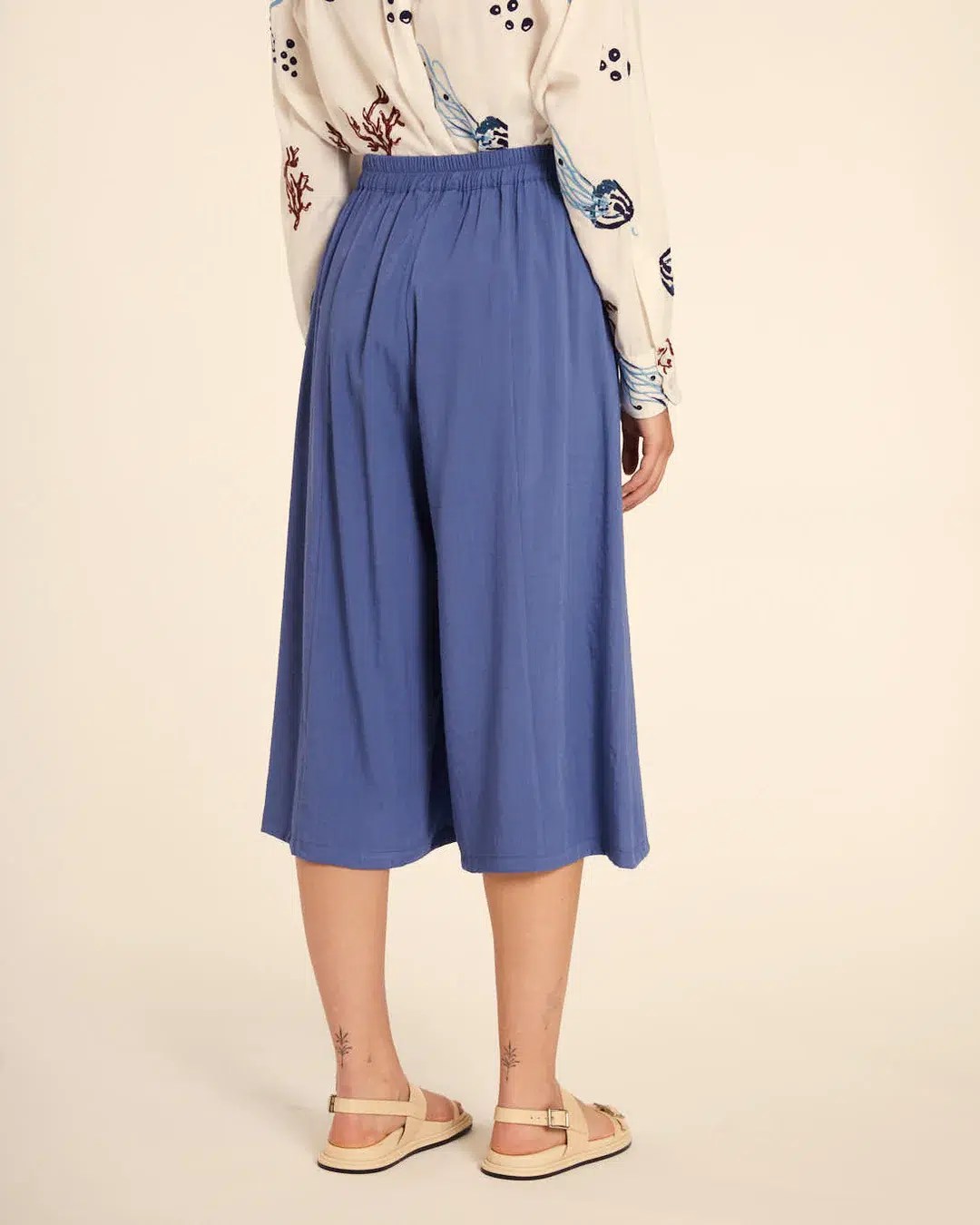 Crop παντελόνι με φαρδιά γραμμή και ελαστική μέση.