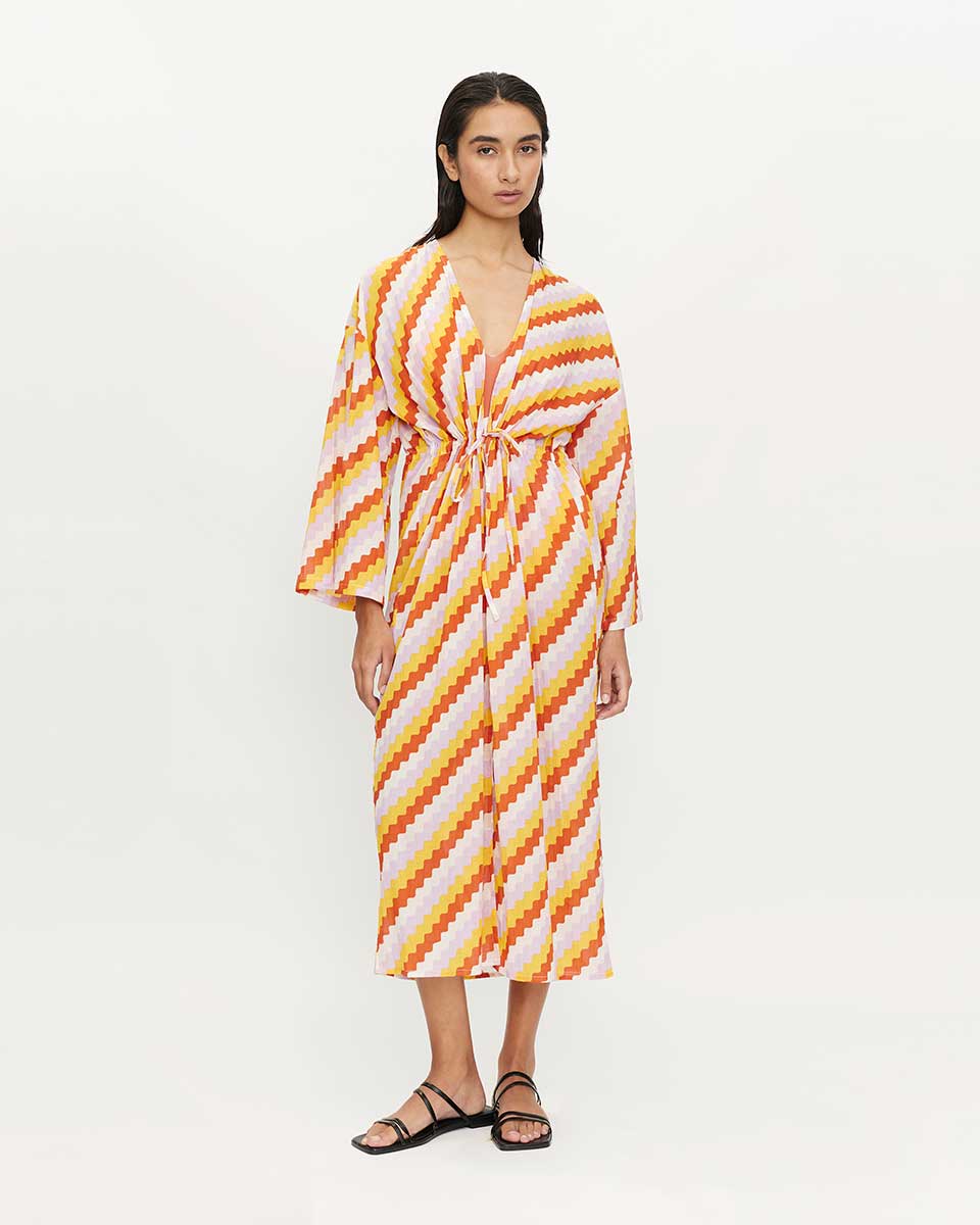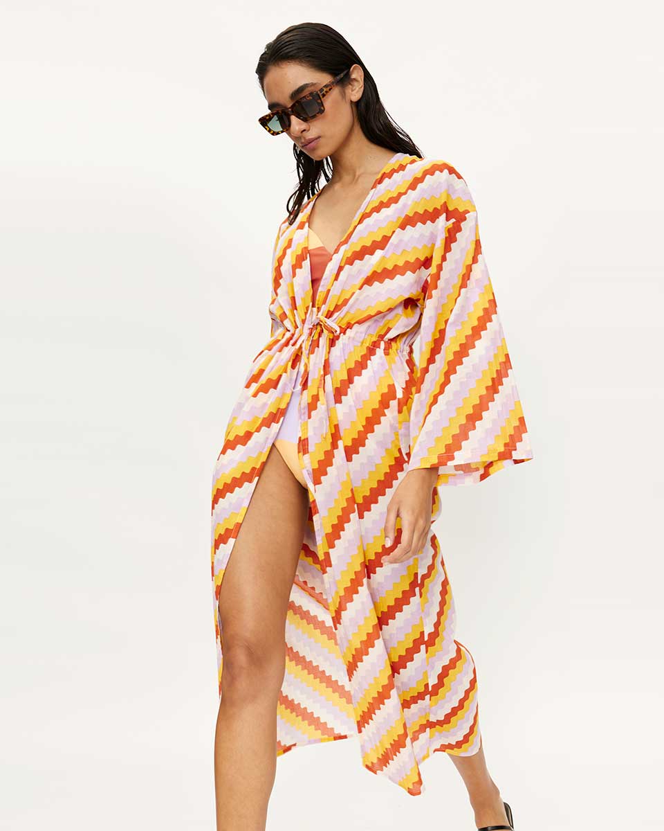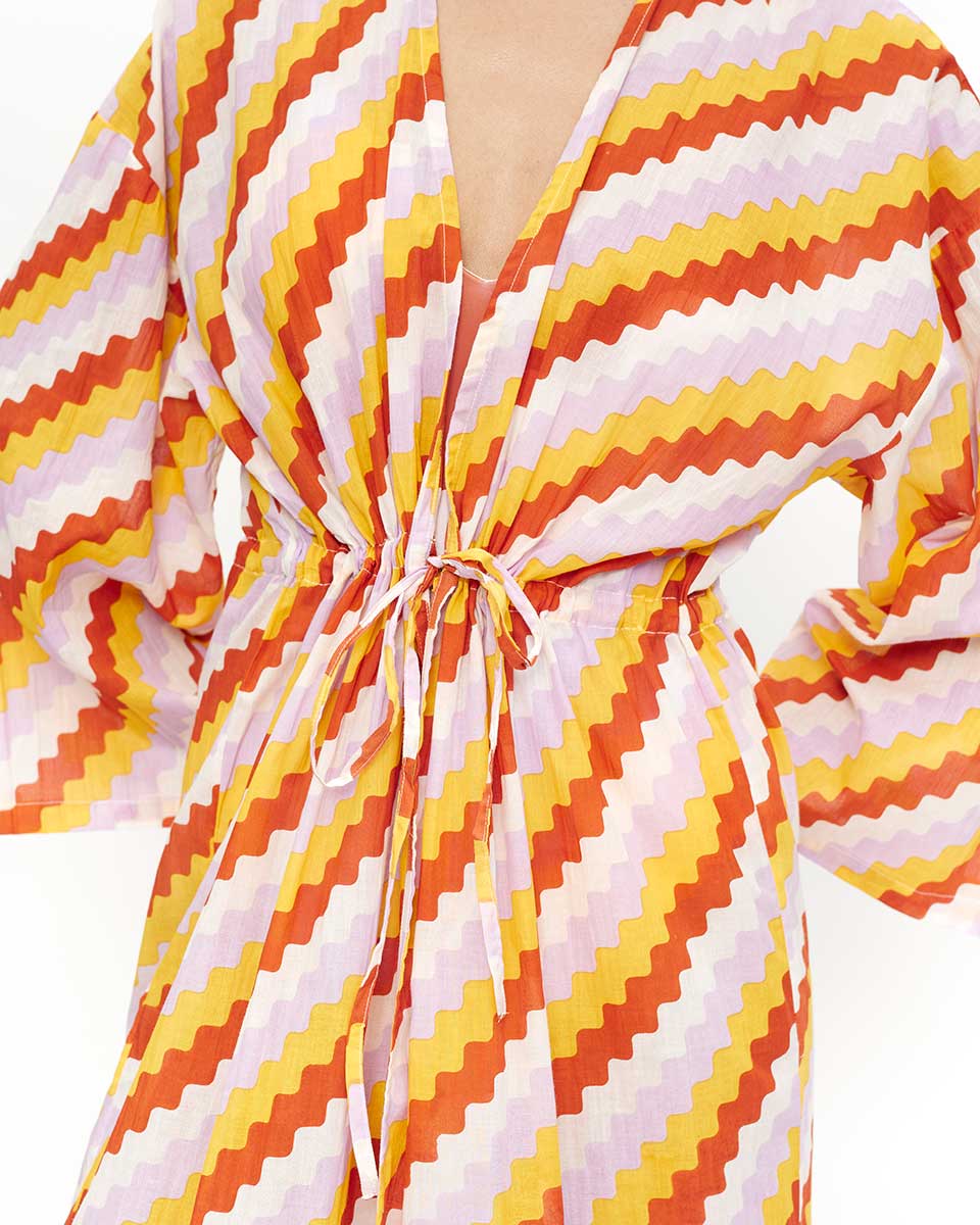 Μακρύ φόρεμα-κιμονό από λεπτό βαμβακερό ύφασμα.